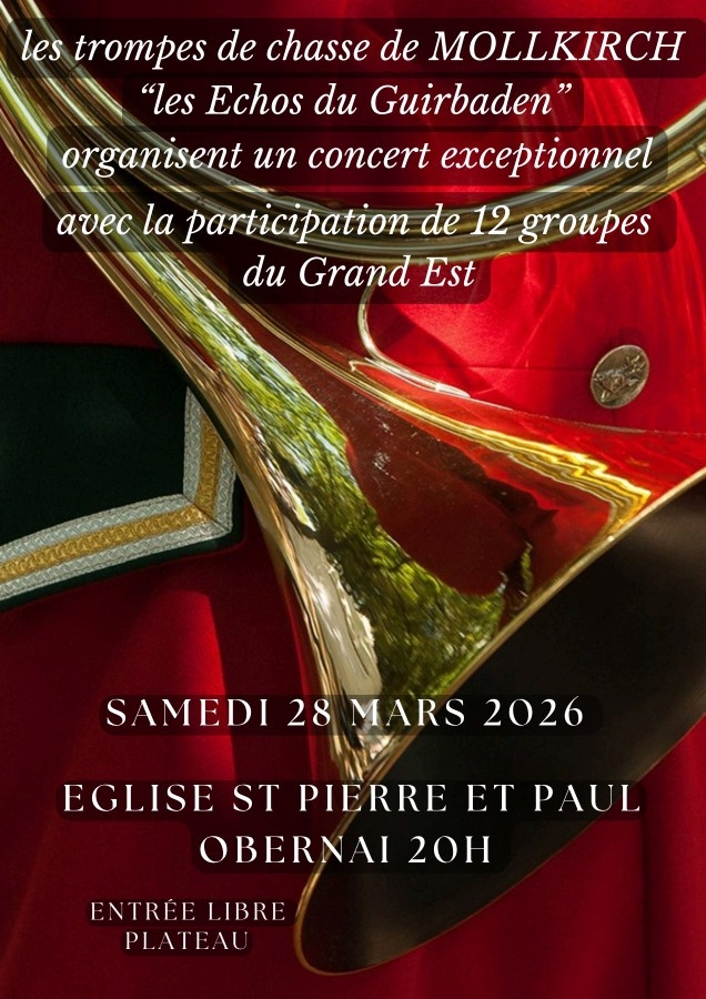 Le samedi 28 mars 2026, les trompes de chasse de Mollkirch organisent un concert exceptionnel en l'église Saint-Pierre-et-Paul d'Obernai. Douze groupes du Grand Est seront réunis pour une soirée placée sous le signe de la vénerie.