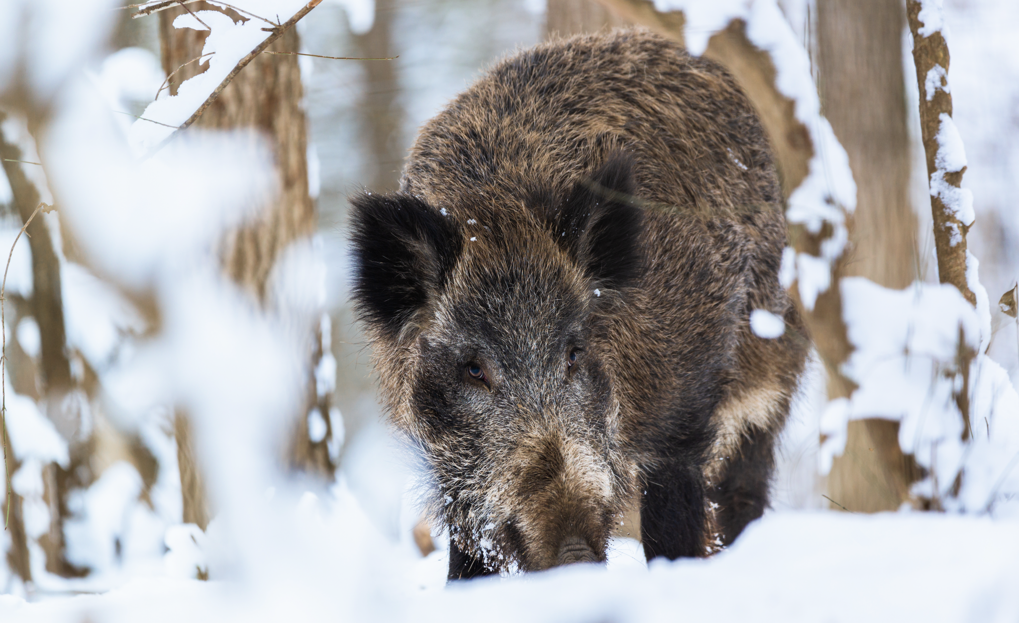 Direction un petit bois à la frontière franco-allemande. La neige brille, le silence règne, quand soudain la meute s’anime : des traces fraîches, des aboiements, et la tension monte. Milan annonce alors : « À la houe ! » Un gros mâle bien armé vient d’être levé.