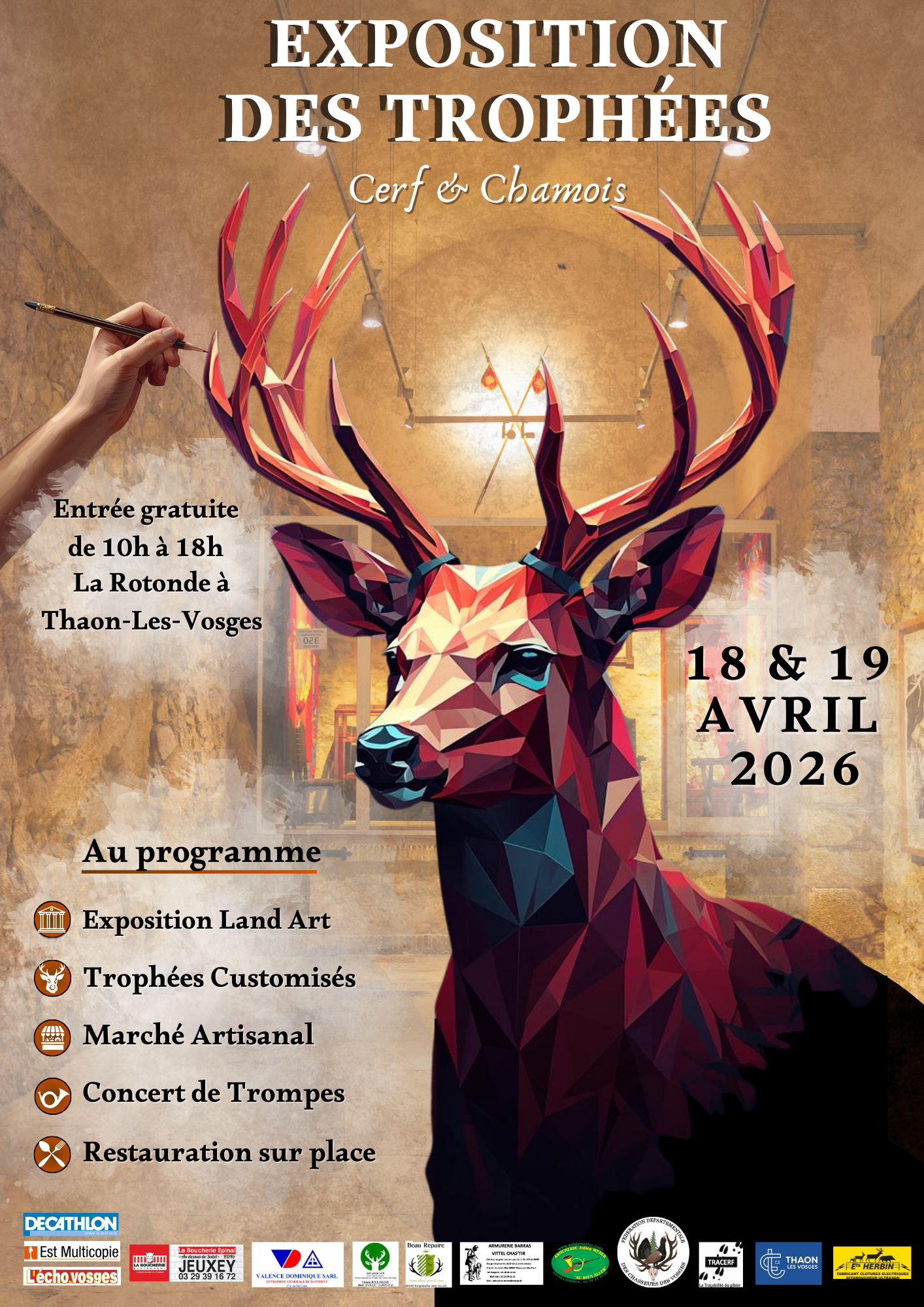 Ceux-ci seront à déposer uniquement et impérativement les lundi 13 et mardi 14 avril entre 8 h 30 et 17 h 30 à la Rotonde de Thaon-les-Vosges. Pour rappel, les trophées doivent obligatoirement être présentés soit sur écusson, soit naturalisés — la tête complète dans la peau — et accompagnés de la demi-mâchoire inférieure droite.