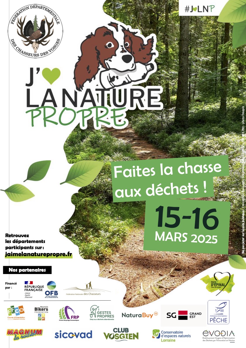 Dans le cadre de l’opération nationale « J’aime la nature propre », une déclinaison départementale est organisée les 15 et 16 mars prochains. Nous vous invitons à rejoindre l’un des 24 sites répertoriés dans les Vosges pour participer à une action de nettoyage de la nature.