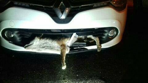 Habituellement, nous vous envoyons ce genre de photo avec des sangliers, mais il semblerait que les renards, eux-aussi, peuvent s’encastrer dans les calandres de voiture... Pour preuve cette photo que nous a fait parvenir Jean-Luc Rose de Metz. Cette collision a eu lieu en février 2017 sur l’autoroute A4 dans le secteur de Sarreguemines.
